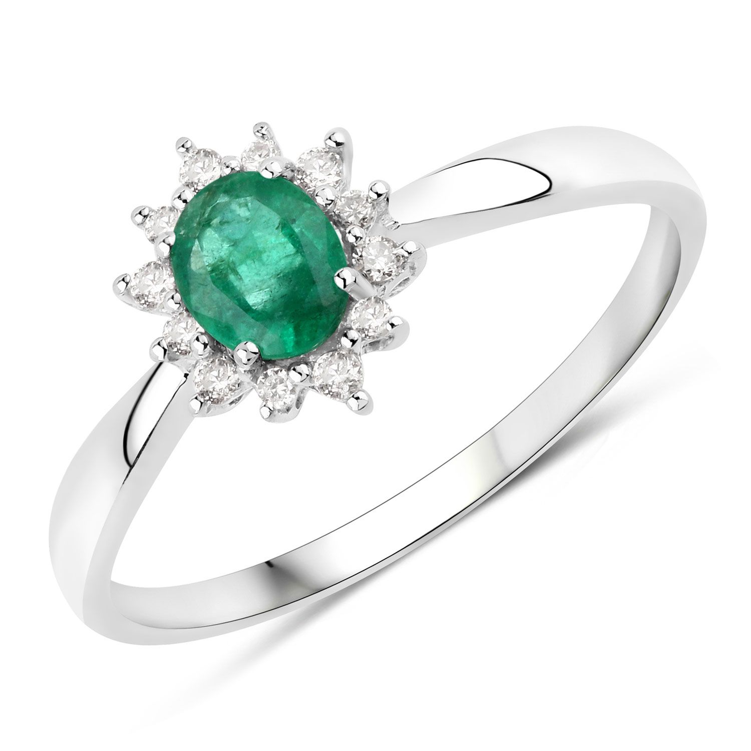 This sweet Zambian Emerald Diamond Halo Ring showcases the captivating beauty of a vibrant, oval-cut Zambian emerald at its center, surrounded by a halo of dazzling diamonds. Known for their deep, rich green hue, the Zambian emeralds are considered some of the finest in the world, and their radiant color is perfectly complemented by the sparkling diamonds encircling them. The diamonds add an extra layer of brilliance, creating a striking contrast with the emerald and enhancing its natural allure. Set in a 14k white gold band, this ring exudes elegance and sophistication. Emerald measures 5mm x 4mm for a carat weight of 0.30, while 10 diamonds together total 0.1 carats.