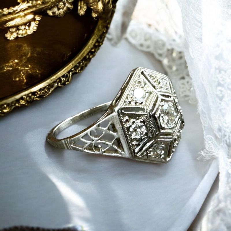 Vintage and antique rings, engagement rings, and anniversary bands— including Victorian, Edwardian, Art Nouveau, Art Deco, Mid Century Modern, and retro designs.